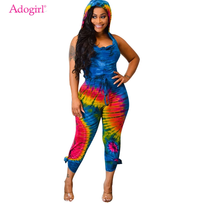 Adogirl Tie Dye Print Sexy Backless Hooded Jumpsuit Draped V Neck Sleeveless Slim Women Romper Fashion Casual Overalls Playsuit Jumpsuits Aliexpress